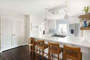 A whole-home remodel involves more than just your kitchen or bath. In general, a whole-home remodel involves renovating the entire floor of your house, if not the entire house. In terms of remodeling, we specialize in structural changes and space planning; a more cosmetic remodel focused on flooring or painting, with a lesser focus on overall design, may be better suited to a general contractor. If you are remodeling your main floor, you may want to update your kitchen, mudroom, bathrooms, living space, and more!