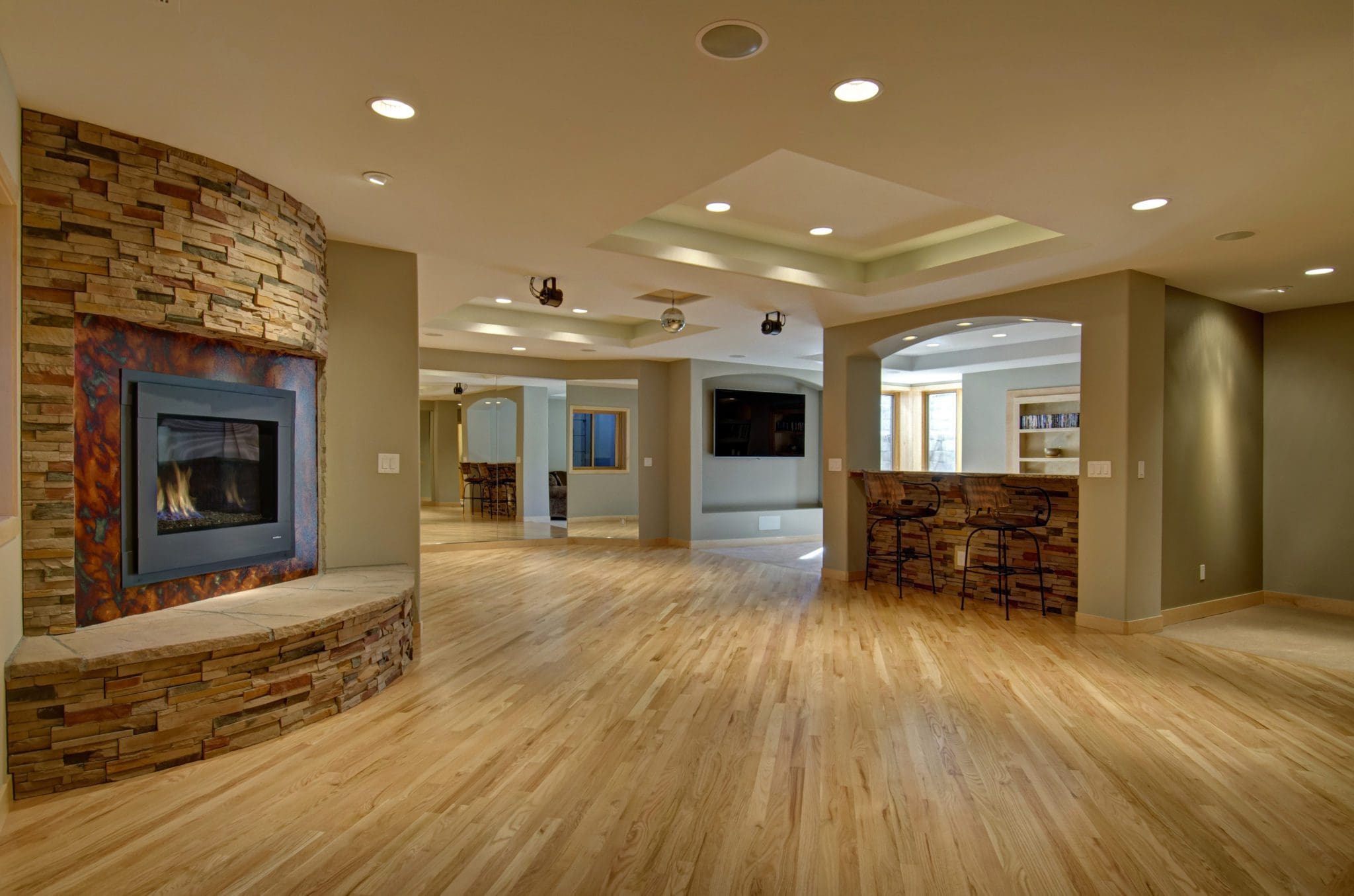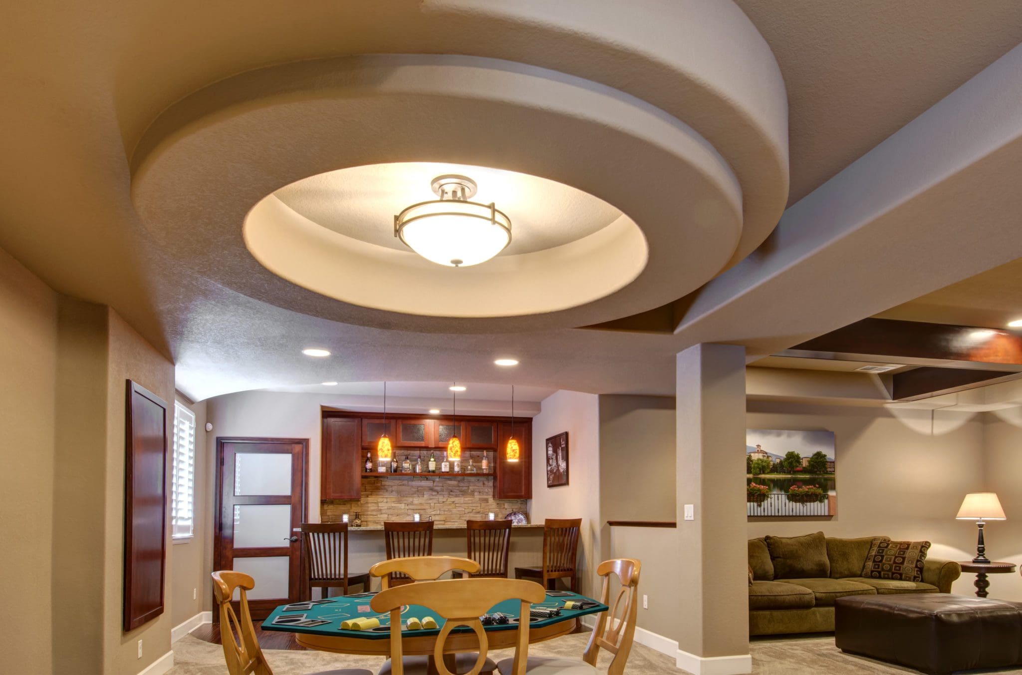 “The design/construction approach by FBC produced an excellent finished product for us. We added a large recreation room for pool, TV and games along with a bedroom and bathroom. Ceiling soffits, arched entries and angled walls created a unique and inviting space. The project team and trade partners did fine work and we are very happy with our new basement. All work was completed on schedule and within budget. The best part was having all construction access through the basement window. Our only advice is to carefully review all design details to assure that everything you want is clearly specified in the drawings. Then be part of the team by doing quality control as the project moves along.”
