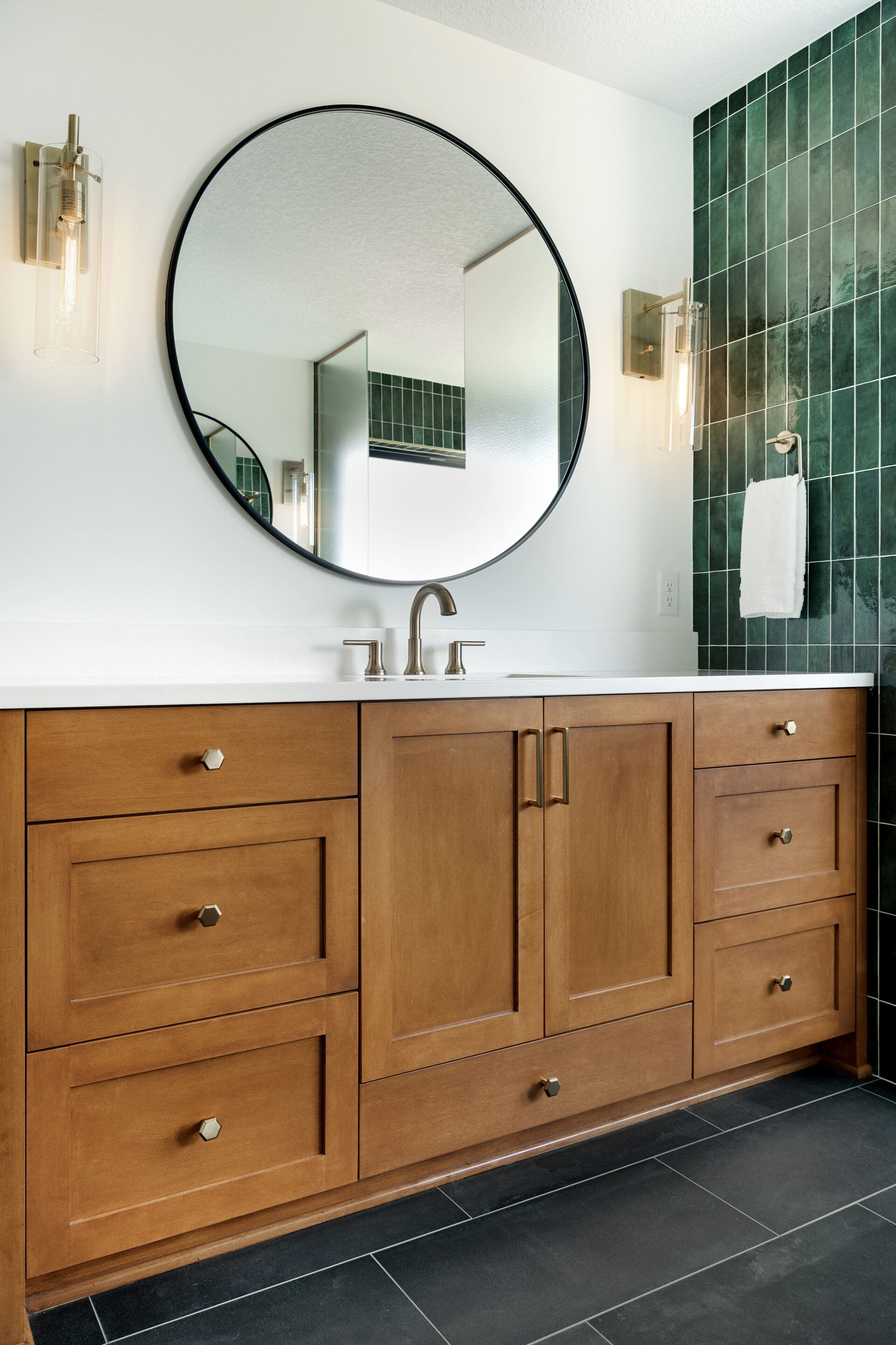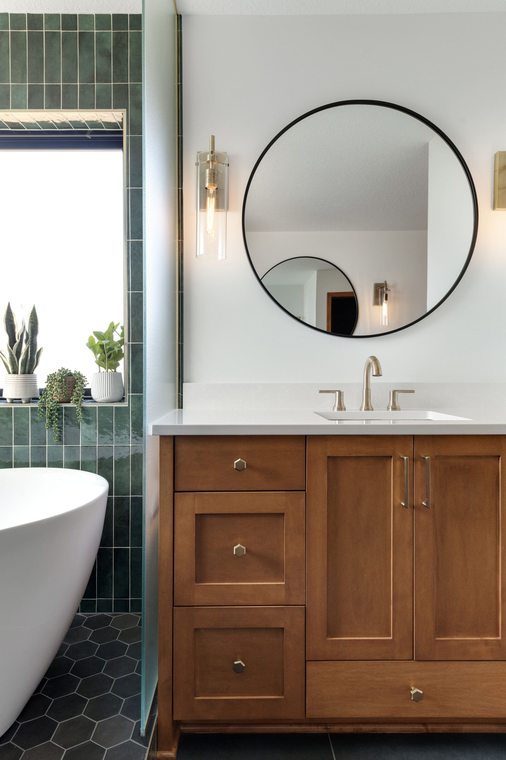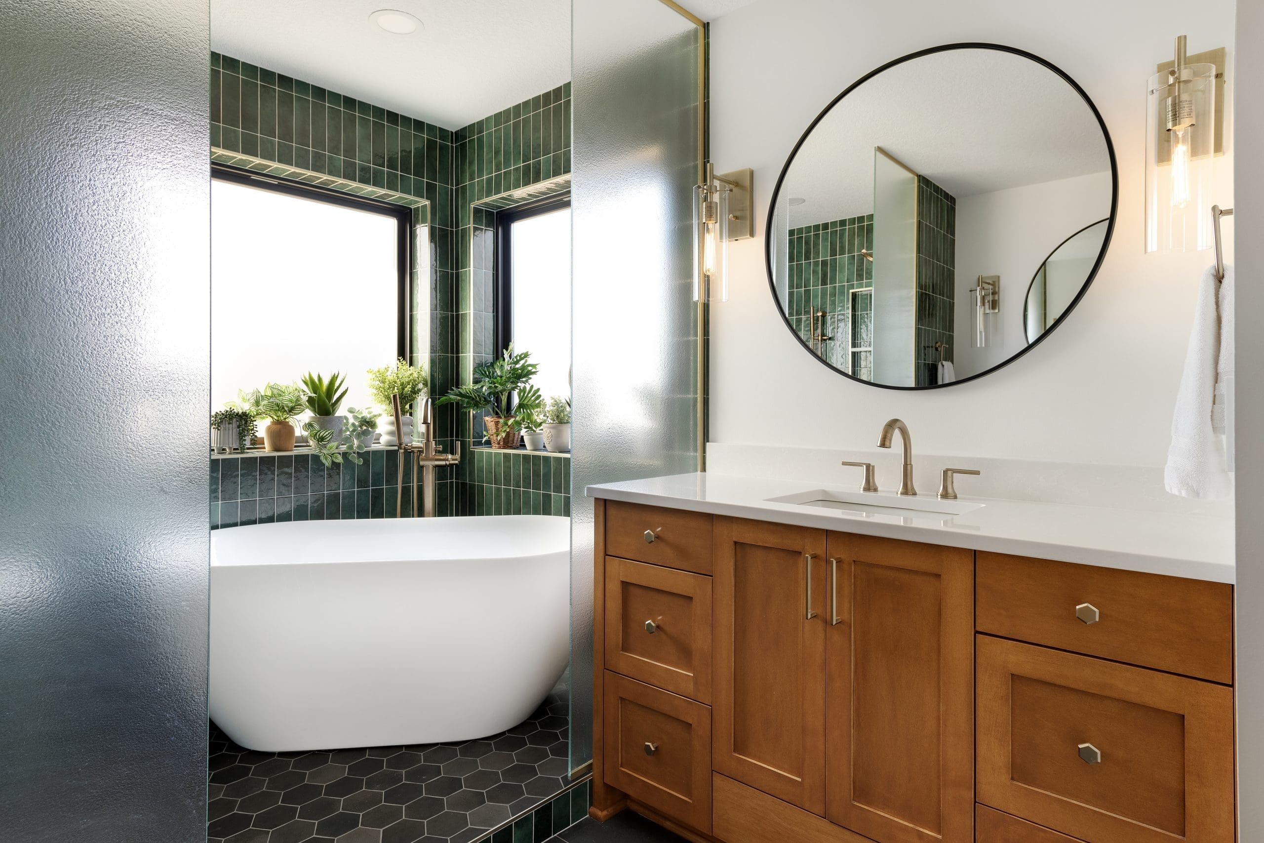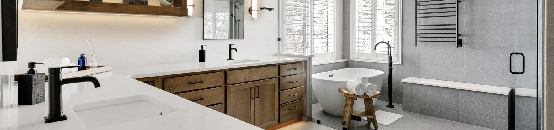Whether you’re building a bathroom into your finished basement, or wanting to update an existing restroom to fit the feel of your remodel project, our team is here to create a finished, updated look for your bathroom. Book a virtual design consultation today!
